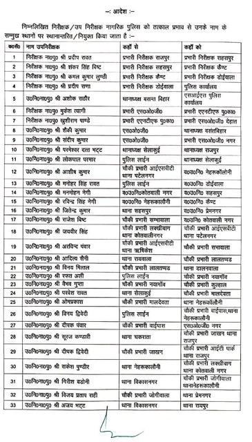 इंस्पेक्टर स्तर पर बड़े बदलाव